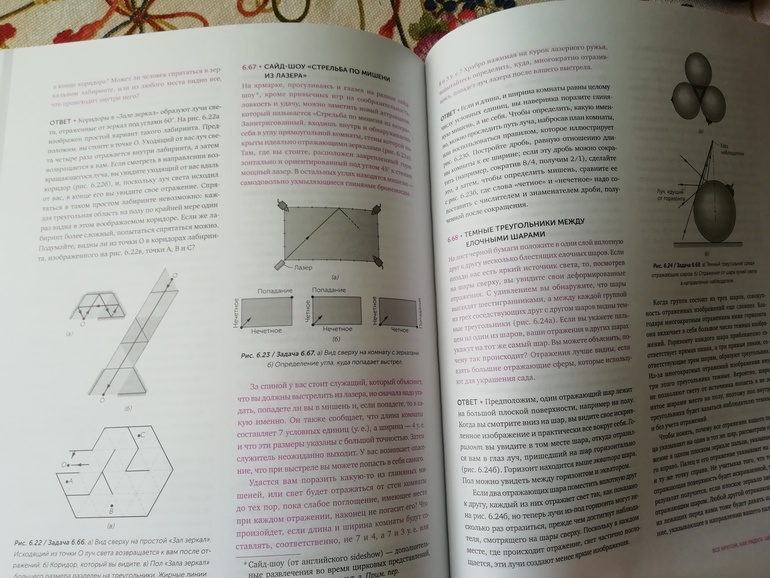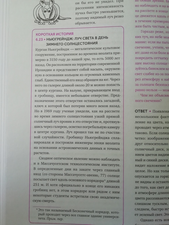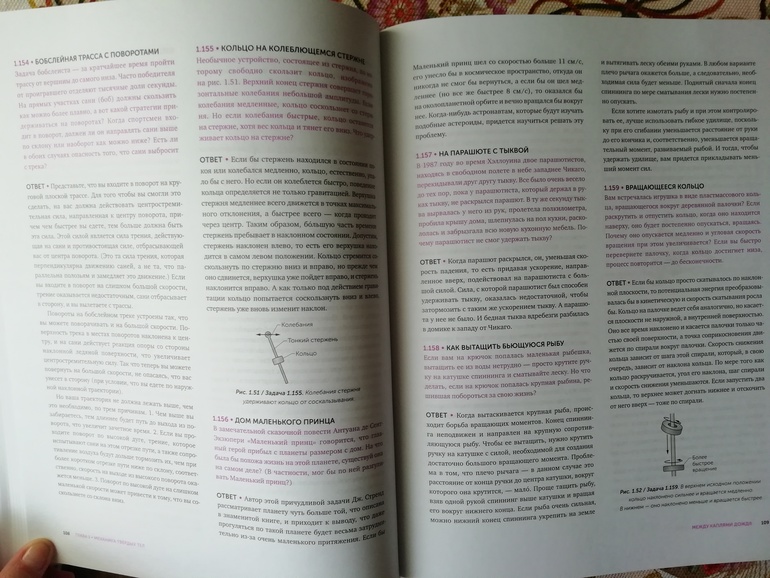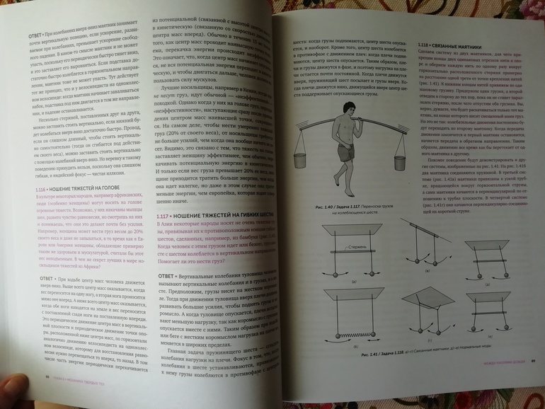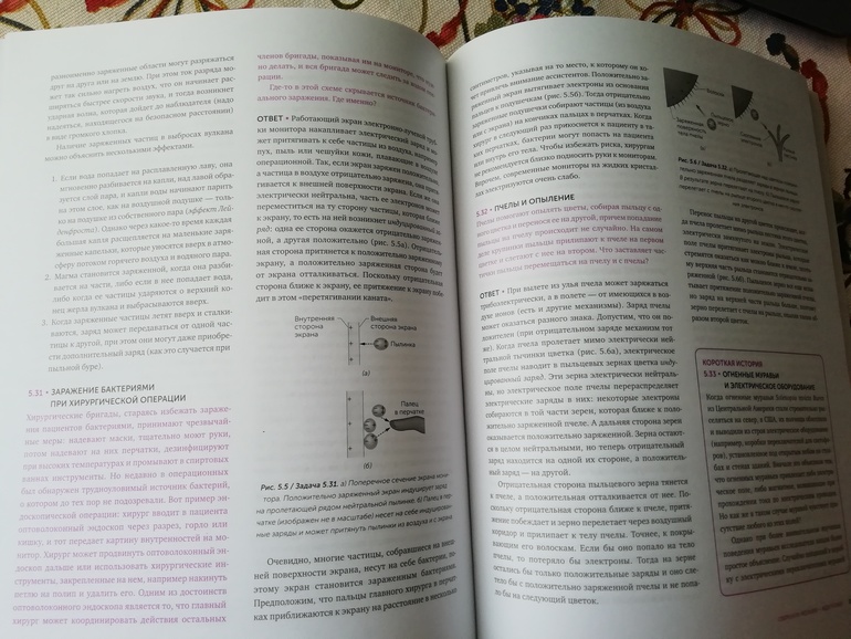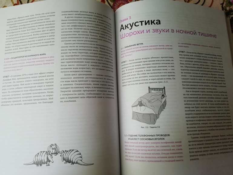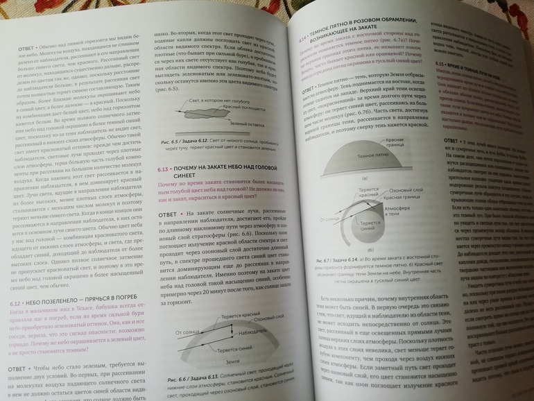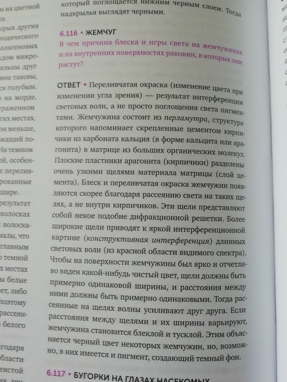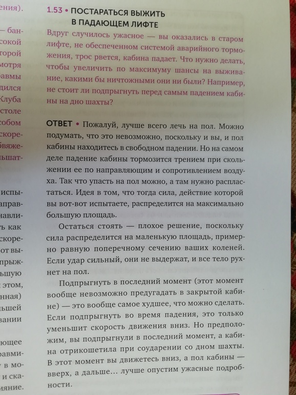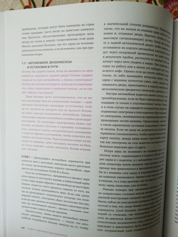 Эта книга не совсем об этом. Она о физике вокруг нас, о том, что нас окружает и почему так происходит. Если честно, мне она напоминает энциклопедию с вопросами. сначала дается вопрос и тут же ответ на него. Вопросы в книге выделены розовым цветом, ответы черным, к некоторым вопросам есть схемы, которые помогают лучше понять ответ.