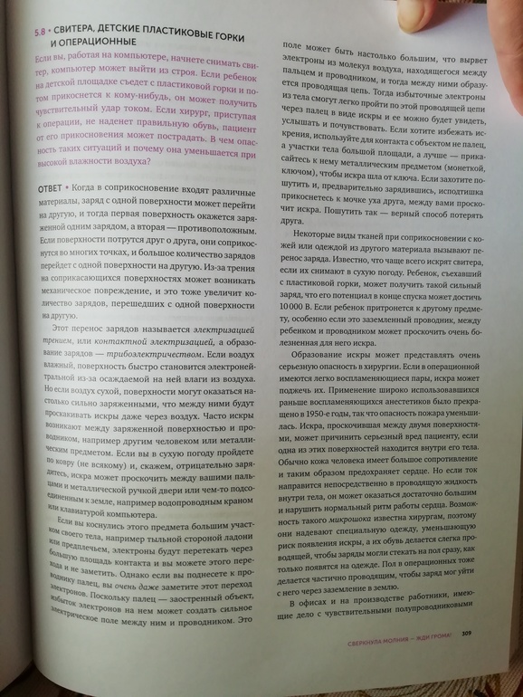 А эта задача из жизни мне очень интересна была. У дочки очень длинные волосы (почти до колен) и она мне постоянно жаловалась, что не может кататься на пластмассовой горке, потому что ее бьет током. Я не верила ей. А потом прочитала в книге об этом. Так что делюсь фото с вопросом на эту тему и ответом на него, вдруг кому так же актуально будит как и мне.