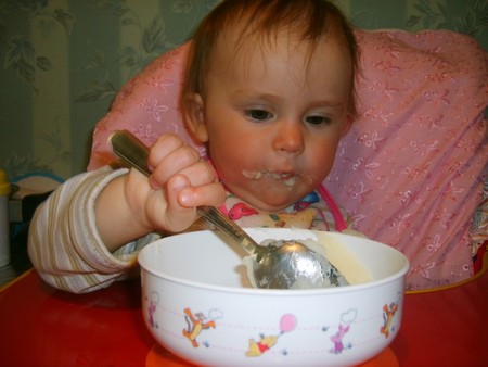 Развитие от 9-12 месяцевДочке 11 месяцев и два дня.И вот я заметила,что она очень хорошо сама может есть ложкой.Где-то дня три я её помогала,а сегодня она самостоятельно съела творожок и картошечку на ужин.Самостоятельный ребёнок растёт!