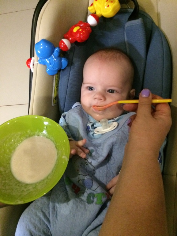 Знакомимся! ))Расскажу о питании малыша в целом. На ГВ мы были 1 мес, после мое молоко пропало. Смесь "Симилак" нам не подошла (запоры и высыпания на лице), кормлю Нутрилоном (и малышу, и мне нравится). Колик у нас не было вообще, не знаю что такое плач малыша из за болей в животике (нам повезло). в 3.5 месяца давала полизать яблоко.Решила ввести прикорм в 4 мес. Весим 7400.
