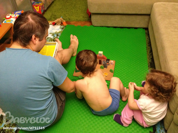Сегодня презентовали деткам новую сказку - "Три поресенка". Ваня слушал с удовольствием и внимал каждому папиному слову и движению.