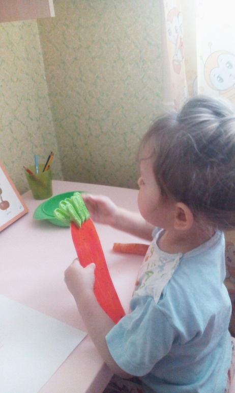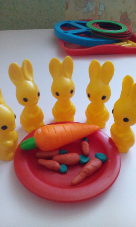 Почистили морковку,сами повели и всех зайчат накормили.