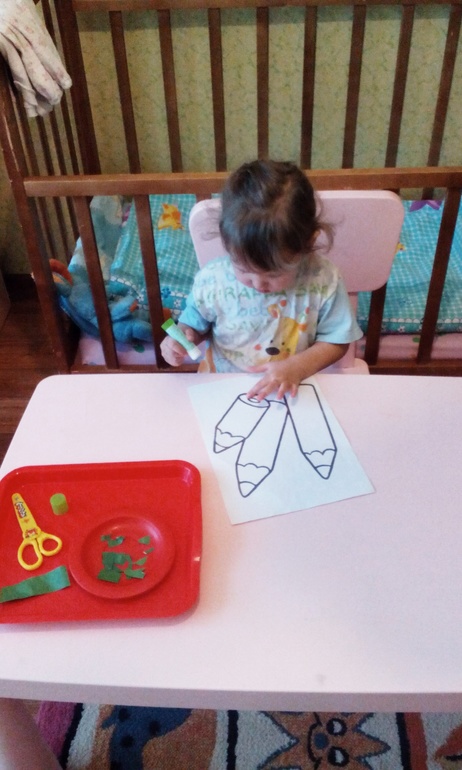 Как мы занимаемся. Делимся опытом.Нимного работ с пластилином и цветной бумагой.