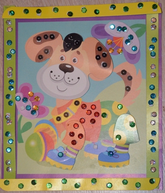 Как мы занимаемся. Делимся опытом.Вчера дочка наконец-таки закончила свой шедевр - многослойную 3D-аппликацию с пайетками. Получилась милая и симпатичная собачка, судя из названия - ЗВЕЗДА ФУТБОЛА! Нам этот набор подарила крёстная, сама бы честно говоря вряд ли такой купила, а очень даже зря... Ведь этот развивающий творческий набор как нельзя кстати подходит для развития мелкой моторики рук!