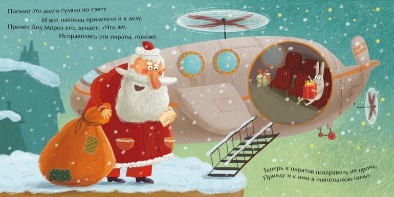 Наверняка каждому ребенку понравятся пираты, которые ради праздника стали милыми и добрыми, аппетитно едят манную кашу, отпускают пленных матросов и просят у них прощения - и все ради встречи с Дедом Морозом, который так спешил к нашим героям.