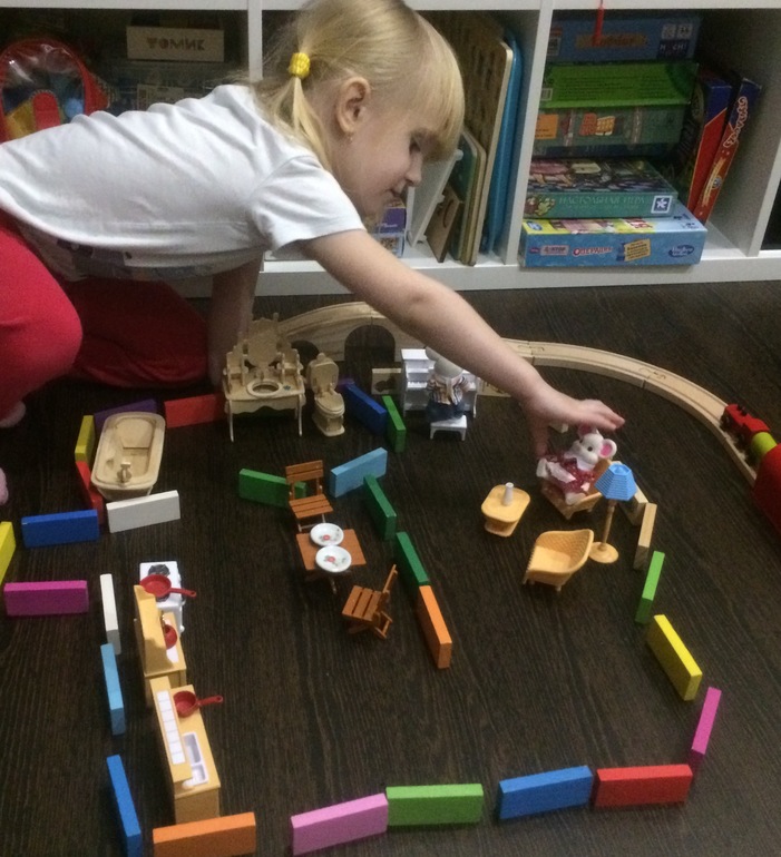 Одним из подарков на день рождения было-семейство мышек (папа и мама) и немного мебели. Дом решили подарить на следующий год. Вот мы и строим разные постройки и квартиры) и жд (это место работы мышек))