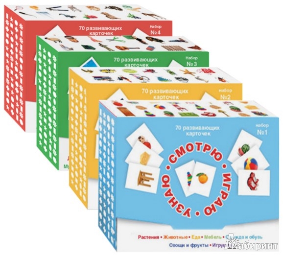 Карточки «Смотрю, играю, узнаю» выпускаются наборами по 70 штук, что очень удобно.