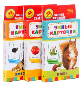 Для самых маленьких рекомендуются карточки с реалистичными изображениями на белом фоне. Именно такие «Умные карточки»выпускает Росмэн: