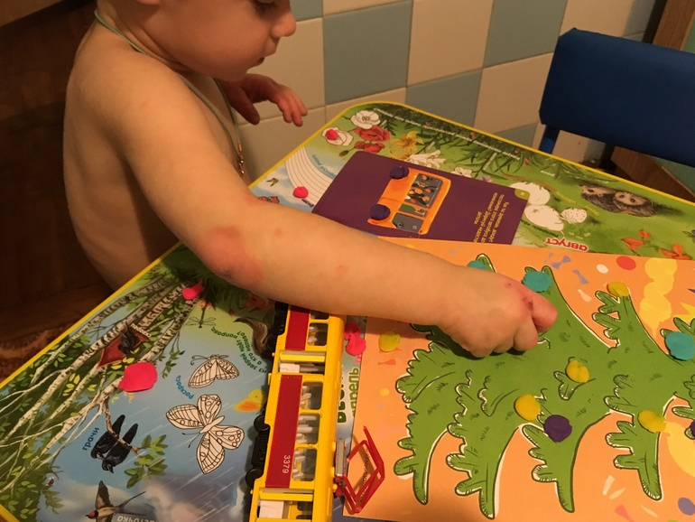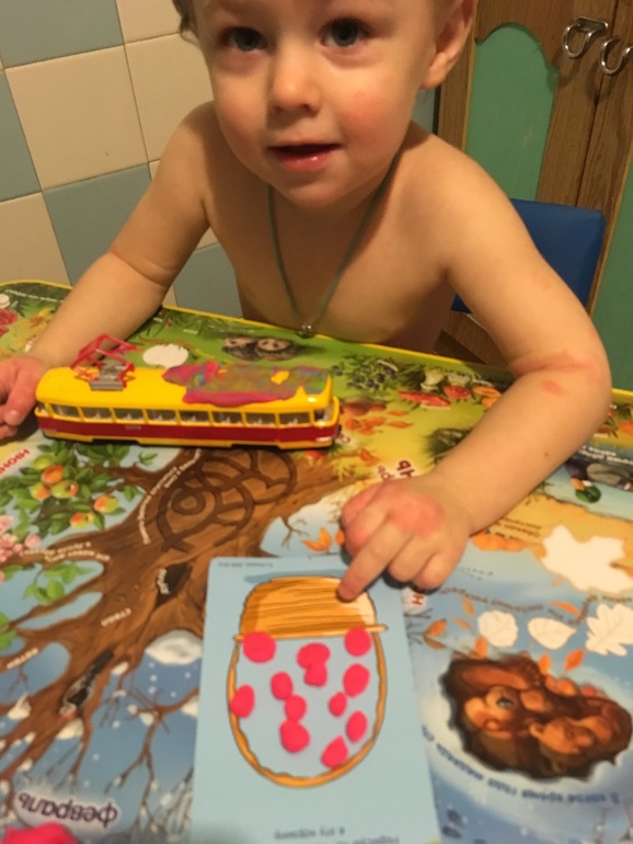 Как мы занимаемся. Делимся опытом.Пишу редко( работы много( Но самые, на мой взгляд интересные развивашки, выкладываю) ну не писать же мне, как мы читаем книжки и смотрим карточки, это и так понятно) Как и у всех, у нас скоро Новый Год) все игры вокруг этого праздника) из последних - мы наряжали Ёлку. В прошлом году ёлки у нас не было, мы решили, что годовалому она ни к чему. В обеденный сон, муж собрал Ёлку, когда Мирослав проснулся, мы рассказали ему, что приходил Дед Мороз и принёс тебе подарочек) Боже, вот это восторг!!! Сын был так рад ёлке и его абсолютно не интересовали подарки под ней) Вечером достали игрушки и не просто наряжали, а ещё и по цветам сортировали, ну куда же без карточек-оттенков) Помню, в детстве, когда моя семья наряжала Ёлку, у меня были любимые игрушки, которые вешала только я) Хочу, что бы у сына было так же) Он сам выбрал в магазине игрушки, которые будет вешать на ёлочку. Вертолёт и автобус) эх, мальчишки) На следущий день, мы снова украшали ёлочку, только на листах из моих первых шедевров, а шарики-пластилин) По идее, Мирослав должен был их давить пальчиком. Но пока я все подготавливала, сын нашёл один из своих подарков , это карточки-головоломки, бежит ко мне на кухню, показывает автобус) ну какая там ёлка) тут же автобус!!! Следую интересам сына, какая разница как моторику развивать) главное, развивать) из пластилиновых шариков, делали колеса для автобуса) и на трамвай прилепили и корзинку ягодками украсили. И наше любимое) рисовали красками. В «моих первых шедеврах» есть интересное задание. Белый лист, а на нем глянцевой бумагой нанесены снежинки. Просто разрисовываешь весь лист, например, синей краской, а снежинки выделяются) вот так мы поднимаем новогоднее настроение)