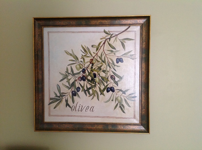 Самое забавное, что мне предложили продать мою шедевру)) вот уж не думала, что моя мазня нужна еще кому-то кроме меня. После отказа предложили приносить выставлять в галерее при багетке другие работы. Ну не могу я их продавать!) могу отдавать и только близким людям, зная, что мои работы будут там любить или сразу делать на заказ, но тоже не всем. Эта работа сделана по мотивам старой этикетки от оливкового масла. Висит теперь, радует мой глаз. Есть еще готовая магнолия, сделаю раму, покажу.