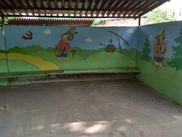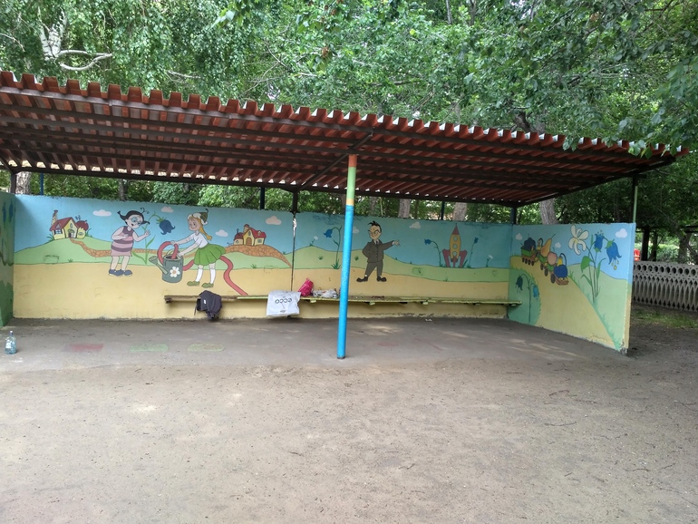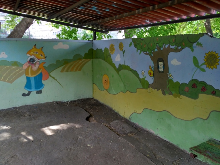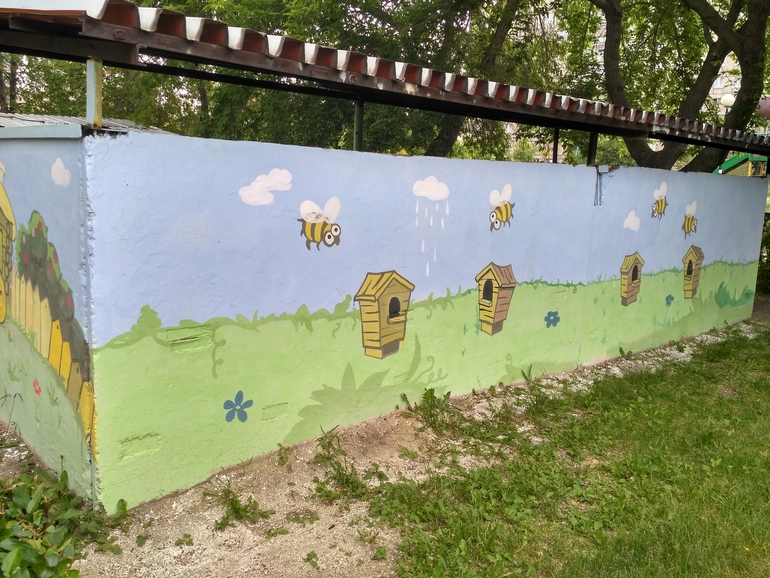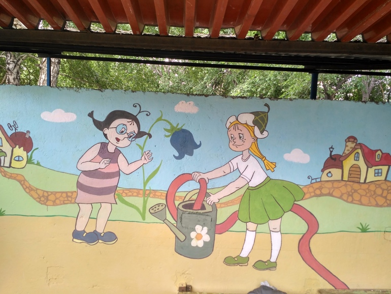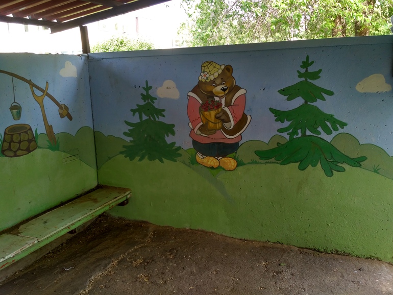 ФрескиПопросили в садике разрисовать беседки. Хватило меня на 2 шт. ) Дети часто болеют и рисовала по немногу. Мне понравилось, опыт уже такой имеется, для меня как психотерапия).