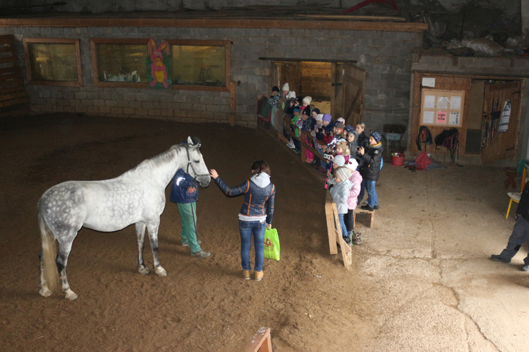 Рассказывала Катя, как я уже сказала, очень интересно, динамично и... как бы это сказать... интерактивно. Дети постоянно отвечали на вопросы, высказывали предположения и т.д. За правильные ответы получали морковку, которой потом покормили лошадок.