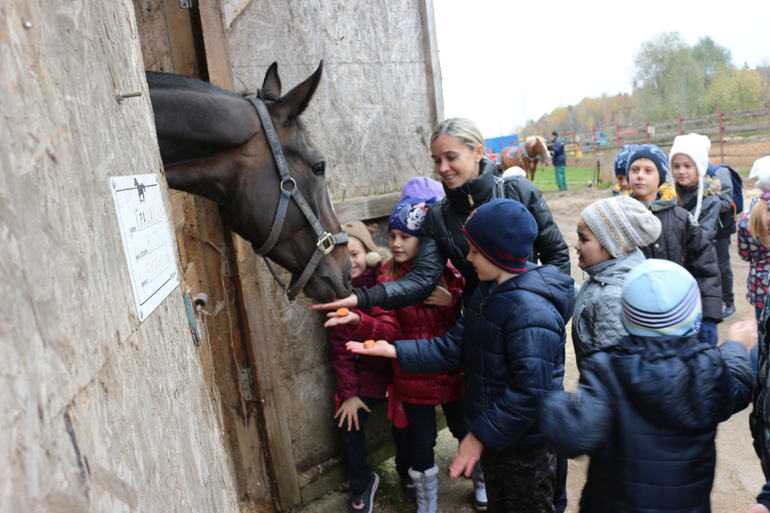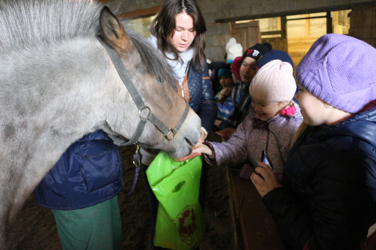 После того, как дети покормили, настискали лошадок и закрепили теоретическую часть на практике, мы отправились на ферму, по дороге еще раз покормив лошадок.