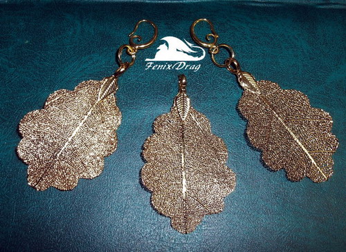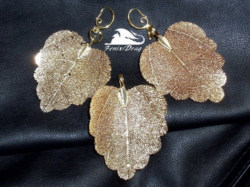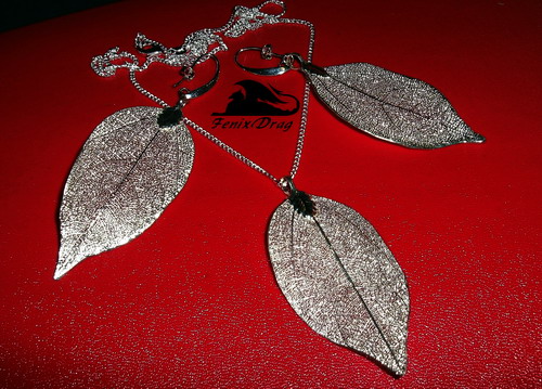 Романтичный комплект украшений - кулон и серьги "Настоящий лист посеребренный и позолоченный"
