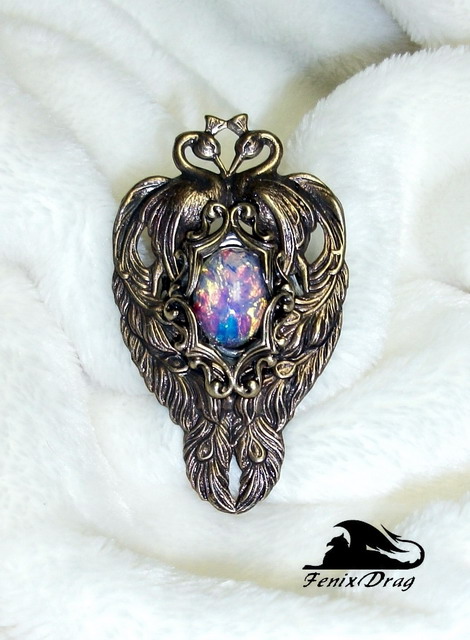 винтажная латунь в покрытии серебром (посеребренный), искусственный мексиканский стеклянный опал