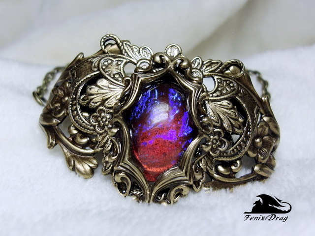 винтажная латунь,искусственный мексиканский стеклянный опал