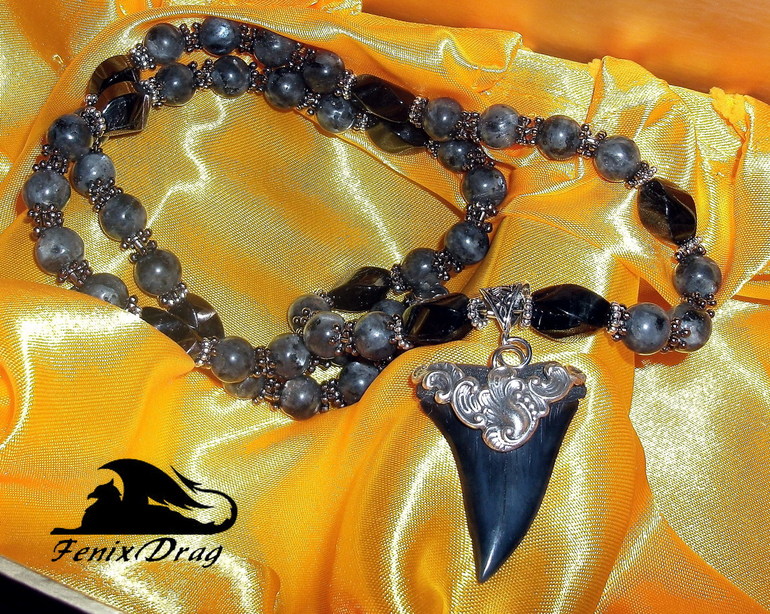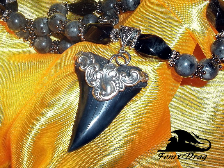 В период Средневековья во многих странах Европы зубы вымершего монстра принимали за зубы настоящих драконов, и потому обретение такого амулета считалось признаком особо статуса. Вес такой акулы при жизни достигал более 60 тонн, а габариты поражают воображение - 30 метров и более, укус же знаменитого хищника равнялся 20 тоннам. По версиям современных ученых, данная смертоносная рыбина имела 276 зубов, расположенных в 2 ряда, размер зуба крупной особи мог быть более 2 метров. Такой амулет подходит людям которые стремятся открыть свое дело, путешественникам, финансистам, банкирам, во время сдачи экзаменов или в тяжелых жизненных ситуациях.