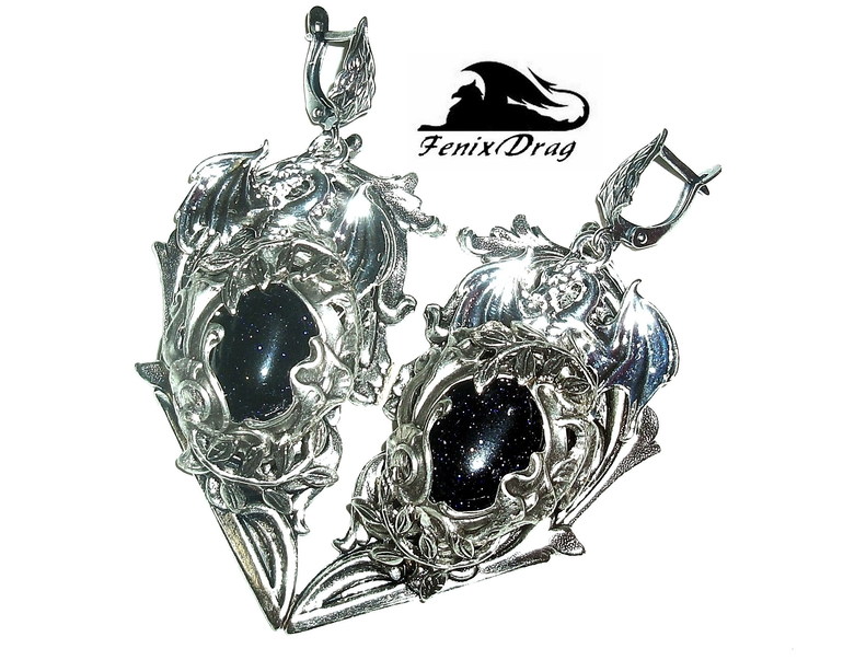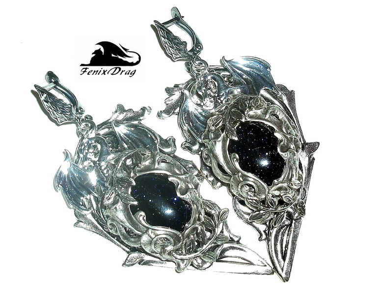 Серьги "Сердце дракона между звезд" с синим авантюрином в стиле Винтаж, Стимпанк, Готика, Викторианский