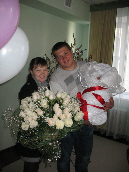 Роды мои первые, долгожданные, старались мы 6 месяцев, и Бог улышал наши молитвы. Беременность моя проходила достаточно стандартно - первые месяцы токсикоз и потеря веса, затем все как у всех до 24 недели, где вдруг на 3д узи нам говорят, что один из сосудиков, к-й прикреплён к плаценте недорабатывает.....и с этого дня таблетки....затем в 32 недели ставят фитоплацентарную недостаточноть 2-й степени + ещё таблетки. С 35 недели ещё начался тонус матки и с возможностью преждевременных родов и ФПН 2-й степени кладут на сохранение под капельницы. Но тут ещё, как назло, я заболела - жуткий насморк и воспалилось горло, лечения в больнице никакого, отпросилась домой с обязательством прокапаться дома, чтоб убрать тонус. За 2 недели дома вылечилась от простуды, но от тонуса никакие капельницы мне не помогли, так я благополучно проходила до 38 недели, и на очередном приеме моя гиня сказала, что ребёночек мой очень низко (да я и сама чувствовала постоянное давление головой в лобок) и что меня кладут, что в течении 3-х дней родим, это был понедельник 22 апреля. Меня в этот день посмотрела моя гиня на кресле, потом в приемном роддома ещё осмотр на кресле и потом ещё вечером на смену заступила врач и ещё посмотрела.........и сказали, что завтра будем рожать (собирались колоть пузырь - очень переживали за ребёнка), хотя все было в норме и анализы, и КТГ. Ну, я настроилась на утро и со спокойной душой легла спать...