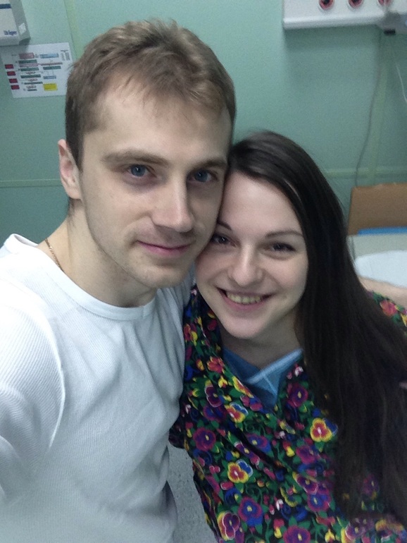 Время на фото - часов 5 утра) мы еще такие счастливые, я довольна от того, что схватки - это совсем не больно) а если дышать - то вообще красота...наивная я была!!!)))
