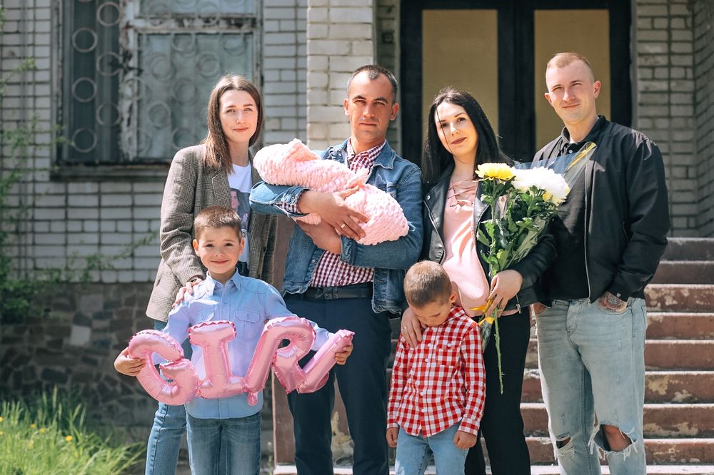 ДнепропетровскВстречали нас муж с сыновьями и моя сестра и с мужем🌷как же я ждала этот день,выла в роддоме,были моменты, даже всплакнула,когда привозили покушать, а потом Через окно общались по телефону (моя палата на втором этаже была)..и наконец-то. 6.05. после обеда мы домой приехали.
