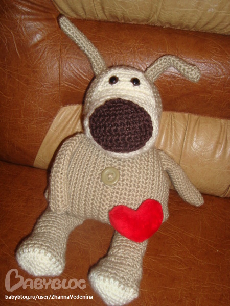 Этого Буффика заказала у меня любящая мамочка для своего сыночка, пуговичку просила не пришивать, так как у нее осталась одна пуговка от любимой пижамы мальчика, вот эта пуговка и поселится на животике собаки))))