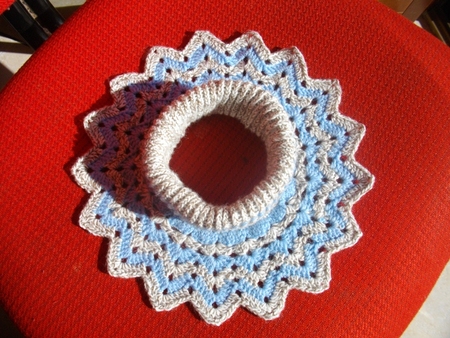 Связалась вещица из on-line вязания, в Италии манишки не нужны, у нас нет холодoв))) Просто вдохновили работы ББ рукодельниц)) Девочки, кто-нибудь хочет такую манишку в обмен на какое-нибудь одно любое мылко, в подарок моей маме? Я за свой счет высылаю вам манишку из Италии, вы за свой счет высылаете мылко моей маме в Саратов))) Бандеролька из Италии будет идти 3 недели, как раз пока дойдет, в России холода наступят))) Манишка из детской итальянской шерсти Baby, противоаллергенная и нерастягивающаяся, можно стирать в машинке. Подойдет как мальчику, так и девочке, связана в нежных бежево-голубых тонах. Ширина (диаметр) манишки 29 см, т.е. хорошо закрывает и плечики, и грудку 1-2 летнего ребенка. Размер горловины в нерастянутом состоянии 37 см, у моей трехлетней доченьки ОГ 52 см, на нее свободно влезает))) Кто готов на такой обмен, пожалуйте ко мне в личку! Спасибо!