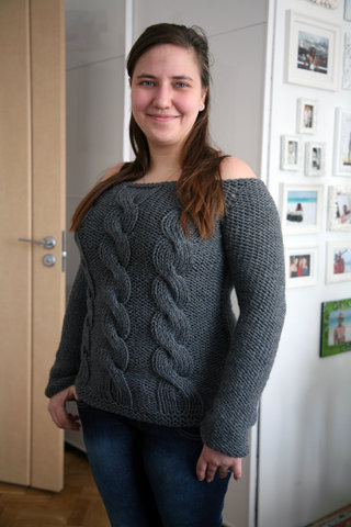 На моточках обычно пишут для какого номера спиц предназначены. То что показали для примера связано как минимум 6-м номером, возможно и больше. Вяжется очень быстра и не скучно, но к сожалению смотрится хорошо, только на очень изящных девушках. Мне такие крупности не пойдут, например.....