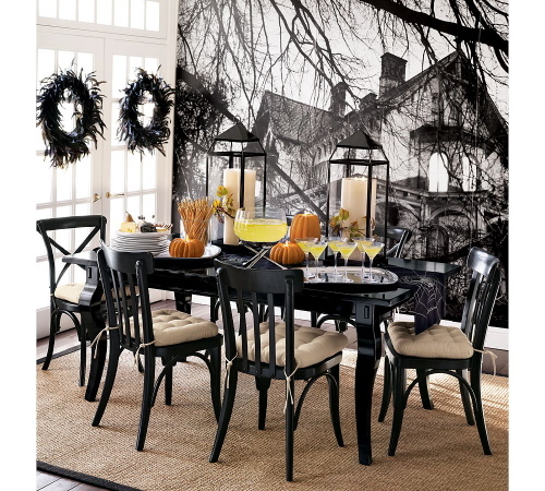 А вот прекрасный Хэллоуинский стол с ведьминой метлой в миниатюре.