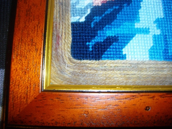 а мне не нравится вообще такая техника, работа как бы жиденькая получается+ прктически всегда работу перекашивает основательно, потом такой перекос тяжело убрать даже багетной, хотя на вкус и цвет товарещей нет.., в идеале шьется строчка полукрес, строчка гобелен, изнанка вот так должна вглядеть