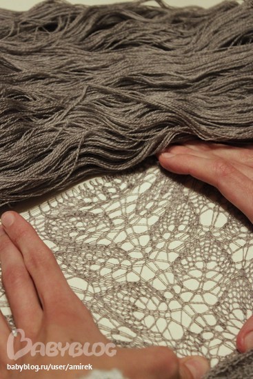 Последняя шаль из кид мохера. Это тонюсенькая мохеровая ниточка. Серая шалька обещает быть просто шикарной. Могу ее специально под ваш размер и вязать. Дней 5 наверно еще.