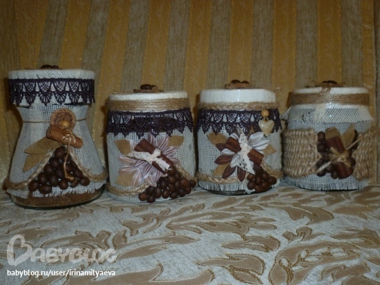 Декор, витражи.Вот такие подарки на Рождество получили родственники. Каждая семья получила баночку для кофе и чайный домик.