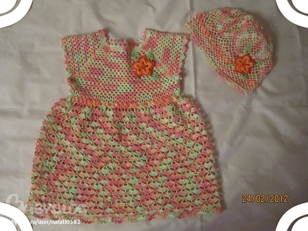 спасибки!! да крючком, схемы не было, просто отовсюду понемногу, кокетка всем известная, юбка по схеме, узор из инета понравившийся выбрала. Шапочка предполагалась быть беретиком, но из-за тонких ниточек пришлось довязать до шапочки)