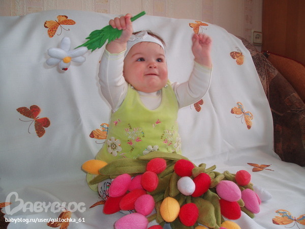 Очень красивые тюльпанчики!Я тоже пошила сегодня такие.Девочки ,а кто может подсказать как сшить ромашки наподобие таких-можно из фетра или из флиса? Хочу дочке сшить теакие на праздник?