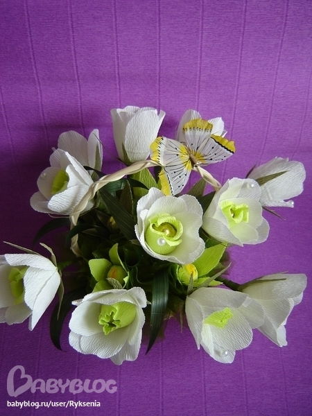 а внизу поменьше цветочки в салатовой бумажке, а серединка белпая или желтая?? оттеняет.