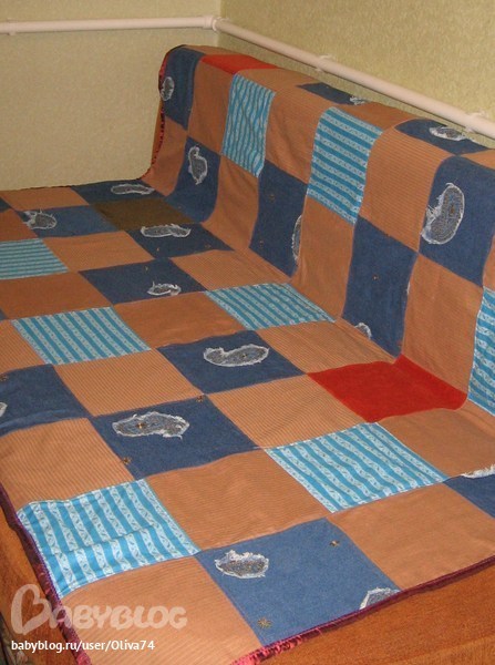 Шитье одежды, выкройки, ремонт одежды, шторы, швейные машины (уже приобретенные)Сначала хотела выбросить,потом как-то само собой они сложились . И получилось покрывало сыну на диван.