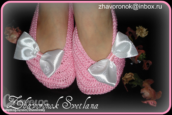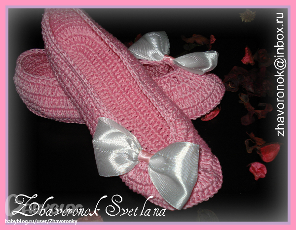 описания у меня нет, но это простые ссн, сначала стельку ссн по кругу, прибавления на поворотах, нужную длину и ширину делаем, потом ряд за заднюю петельку без прибавок,для подъема вверх, следующие рядки убавляем на носочке, делаем нужную высоту, последний ряд обвязываем сбн с убавками, чтобы по ноге были.
