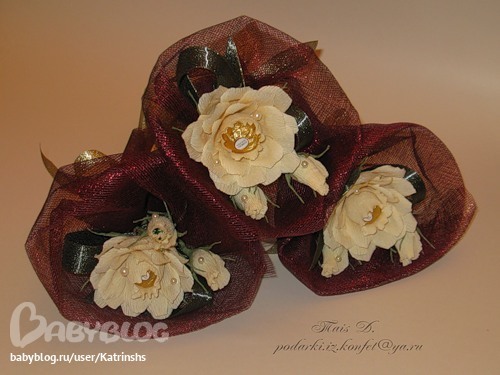 А если вы лично считаете букеты из конфет могильными, то просто пройдите мимо этого сообщества и все ))) зачем оскорблятьчужой труд???