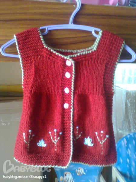 Малая здорово прибарахлилась. Мне особенно понра 2 жилеточка, которая бордового цвета.