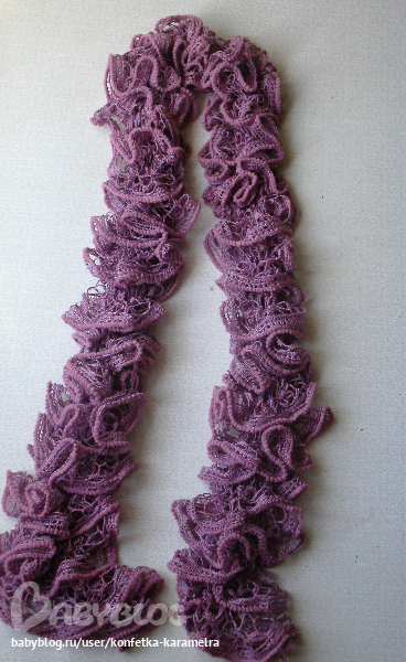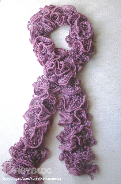 насмотрелась я на ваши шарфики девчонки и захотелось мне себе такой связать купила в магазине пряжу спицы пришла домой и сразу ступор вязать то я не умею даже спицы не разу в руках не держала просидев полночи около инета насмотрелась ваших мк (спасибо девчонки вам за это )и вот утром свершилось чудо вроде получилось .