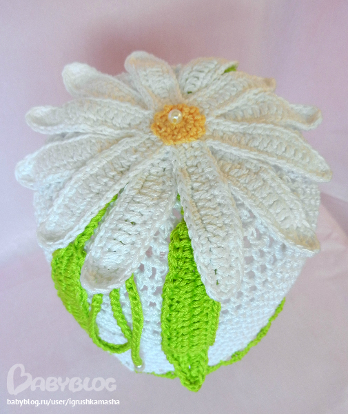 Мы с дочей очень ждем лета, поэтому очень интенсивно к нему готовимся!!! Вот и еще две шапочки связались. Многим знакомая ромашка. В серединку добавлю еще 6-7 бусин. Фото, к сожалению, не очень удачные, так что очень извиняюсь