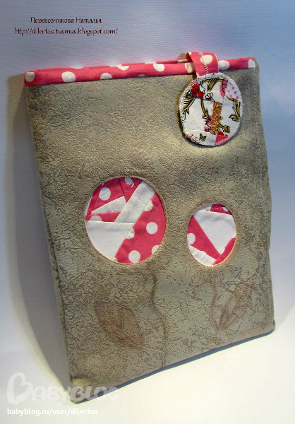 Шитье одежды, выкройки, ремонт одежды, шторы, швейные машины (уже приобретенные)Почти год назад посчастливилось мне заиметь кусочек ткани, оставшийся после перетяжки мебели. Такая она приятная на ощупь! И цвет - прям как я люблю, одно плохо - для игрушек она не подошла. Может для каких-нибудь больших и сгодилась бы, а для маленьких ну ни как! Слишком плотная оказалась. Вот лежала она у меня, лежала, пока я не созрела сшить чехольчик на мой Айпад. Давно собиралась, но все руки не доходили. И наконец дошли! А заодно поэкспериментировала с вшиванием кругов с изнанки. Не знаю как эта техника называется, но очень уж она мне нравилась. И вот, что получилось. С одной стороны - красота в виде весенних цветов, сделанных в технике и даже небольшой клапан на липучке имитирует цветочек, а с другой - кармашек для бумажек-записочек с аппликацией в виде пасхального зайца (глаза у него, кстати, из бисера). Вот такой подарок я сделала себе к Пасхе.