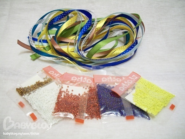 А к ним ленточки обалденные -буду для доче учится заколочки и резиночки.... А еще бисер - пригодится мне везде и в бижутерию, и плести, и вышивать