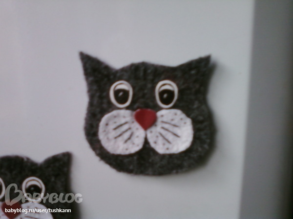 Сегодня дошивала кота с мешочком из войлока, и захотелось сделать из войлока что-то маленькое, быстренькое... и сразу придумались опять же коты с магнитиками на холодильник, сделались очень быстро))) не знаю, в какую категорию отнести, поместила в декор, если что не так - исправлю)))