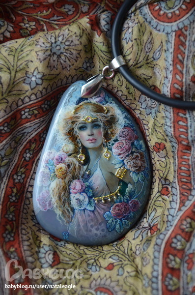 Бижутерия для слингомам. Слингобусы. Грызунки.кулон ,.шепот цветов,,живопись на агате...( многослойное письмо масляные краски,лак)
