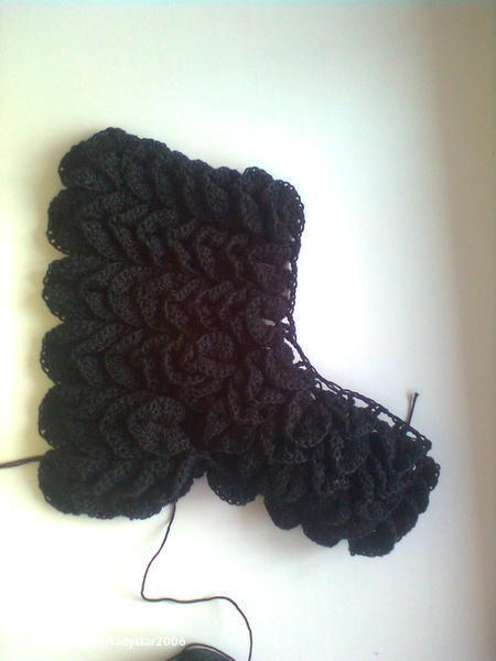 Я начала, но вот по описанию именно болеро, там по 20 столбиков нужно связать для 1 чешуи, получается совершенно не так как на картинке, по середине большая дырочка, чего только не перепробовала. БУду наверное так вязать)))