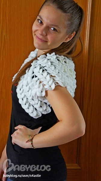 с моими нитками так это описание на мою 6 месячную дочь)))) я все по сземе вязала 10 столбиков в одной чешуе....сфоткаю позже выложу