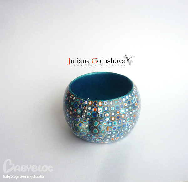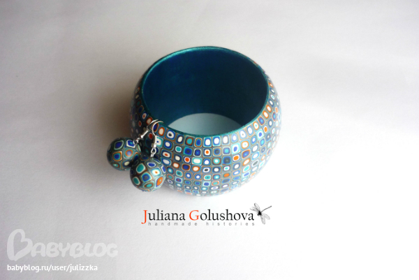 Браслет из пластики на широкой(5см) деревянной основе, тонированной акрилом, покрыт лаком на водной основе, серьги на серебре 925" пробы...