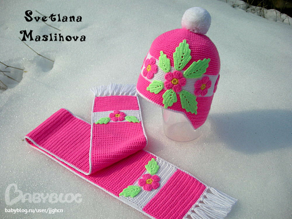 Шапка и шарфик к весне для девчушки.