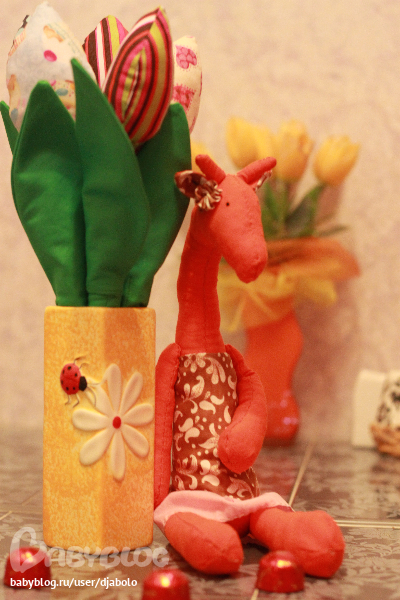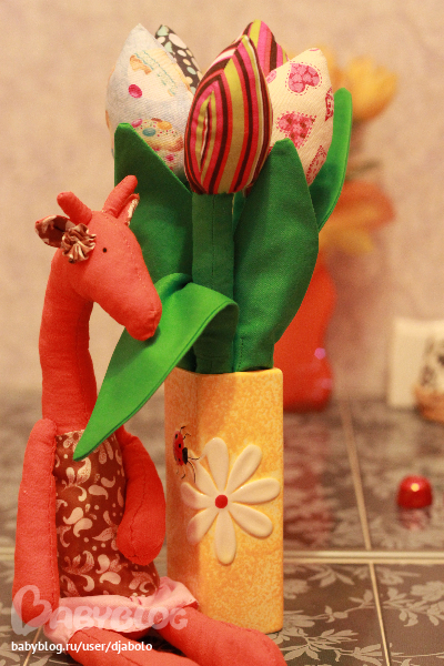 Свои тюльпанчики раскроила еще до 8 марта, но сшить их у меня никак неполучалось...И вот сегодня я их доделала! Сфотографировать одних не получилось, т.к. мой Боньке они очень приглянулись